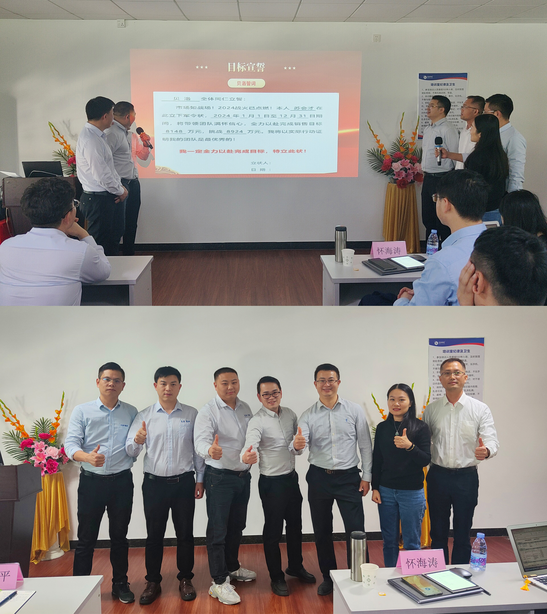企业高管及各部门负责人等50多位相关职能员工了参加本次课程,并为《2024年度经营战略》项目顺利导入和落地推行进行宣誓、颁发军令状及责任书。
