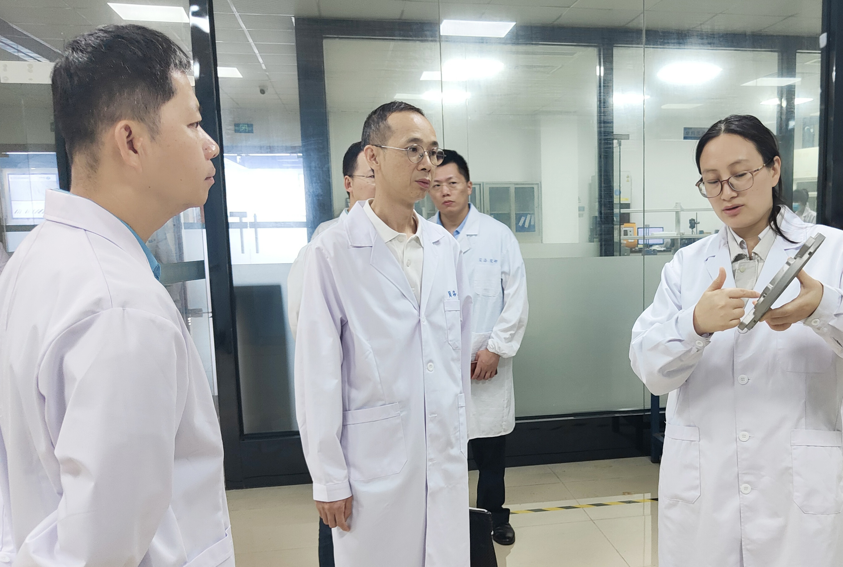 随后,市领导一行参观了J9官网新材的CANS国家认可的实验中心,伴随实验室主任的介绍,大家了解了J9官网多年来在研发上持续投入和不断突破技术难关的决心,而且拥有高效务实的研发团队、健全的研发体系和自主研发的核心技术,市领导们对J9官网新材强大的企业实力和目前所取得的发展成绩予以高度的认可和赞扬,同时希望企业与相关部门保持密切的联系,展开全方位、多角度、多层次合作,联合起国内知名渠道商,推动增长东莞企业订单,赋能产业高质量发展。