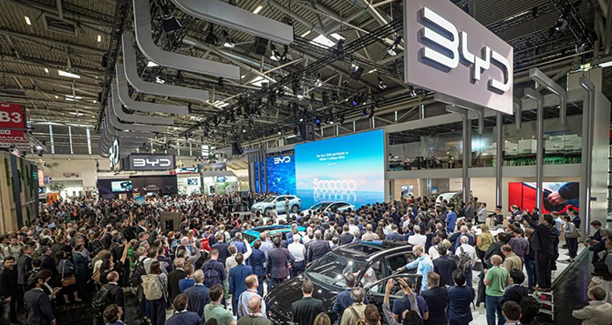 比亚迪携海豹、宋PLUS EV冠军版、元PLUS(海外命名为BYD ATTO 3)、海豚、汉以及腾势D9亮相IAA。